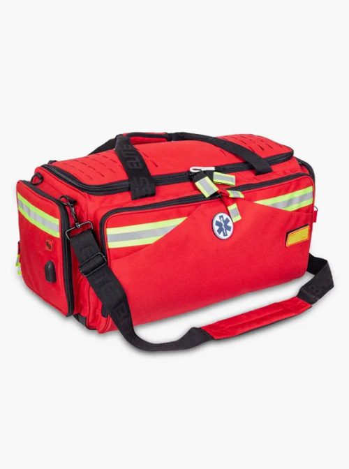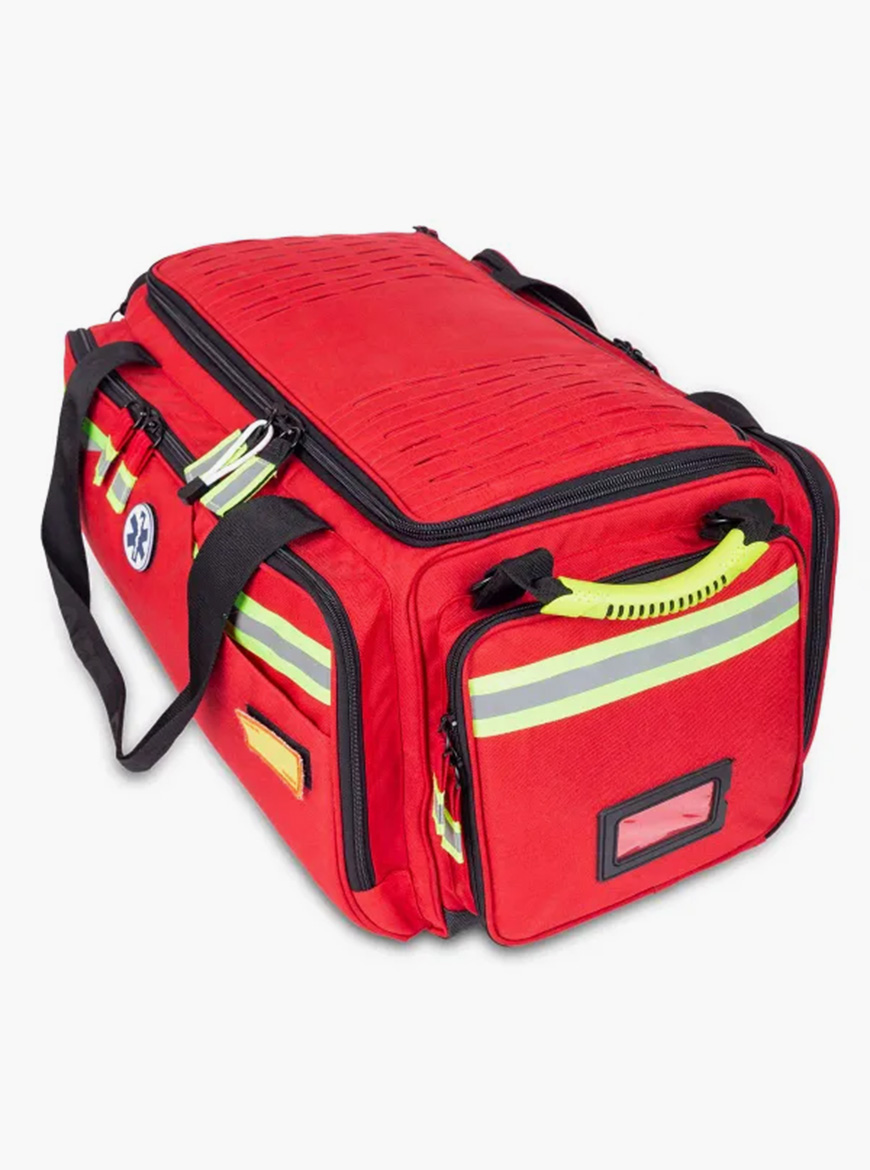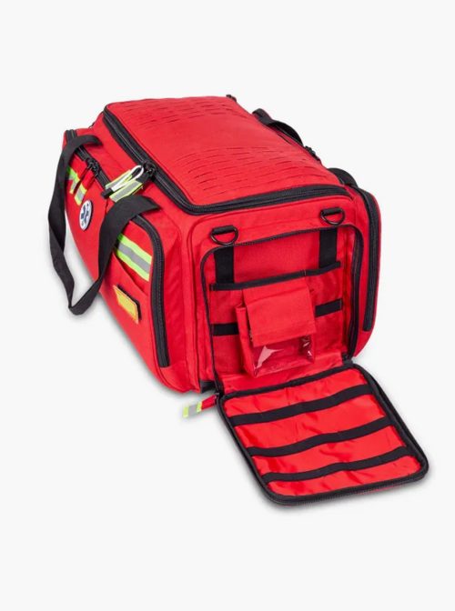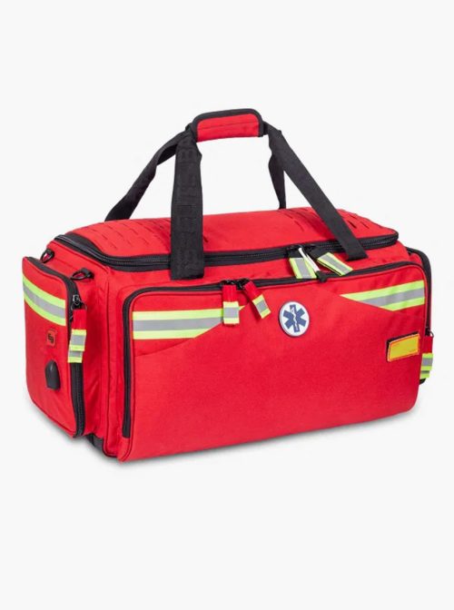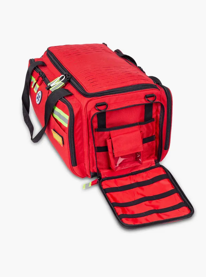 – Painel extraível com 4 divisões com puxadores de cores segundo o código de cores internacional: azul (respiratório), encarnado (circulatório), verde (cirúrgico) e amarelo (pediátrico);