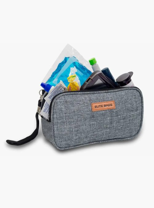 Estojo isotérmico desenhado para levar todos os elementos essenciais para o tratamento da diabetes.