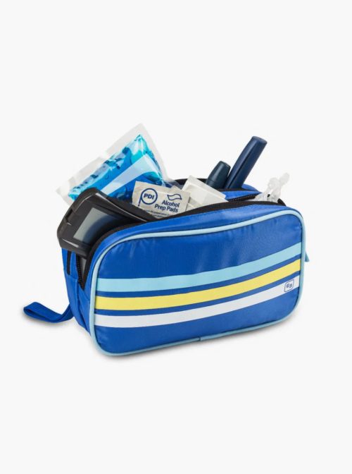 Estojo isotérmico desenhado para levar todos os elementos essenciais para o tratamento da diabetes.