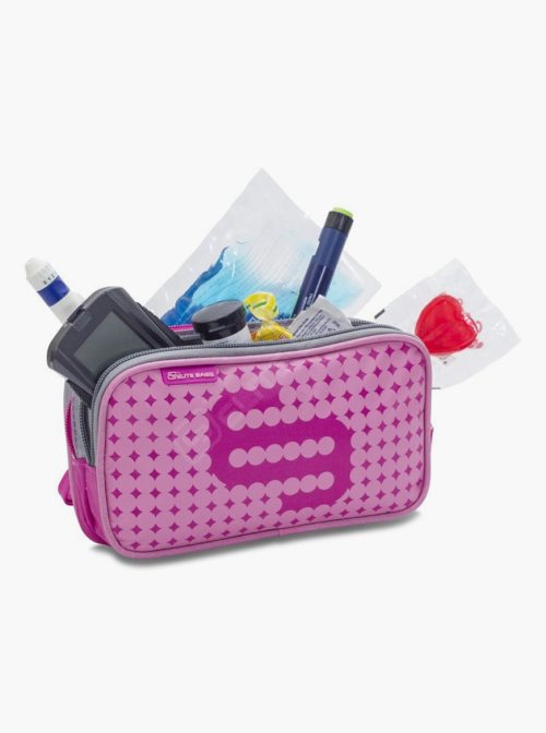 Estojo isotérmico desenhado para levar todos os elementos essenciais para o tratamento da diabetes.