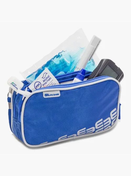 Estojo isotérmico desenhado para levar todos os elementos essenciais para o tratamento da diabetes.