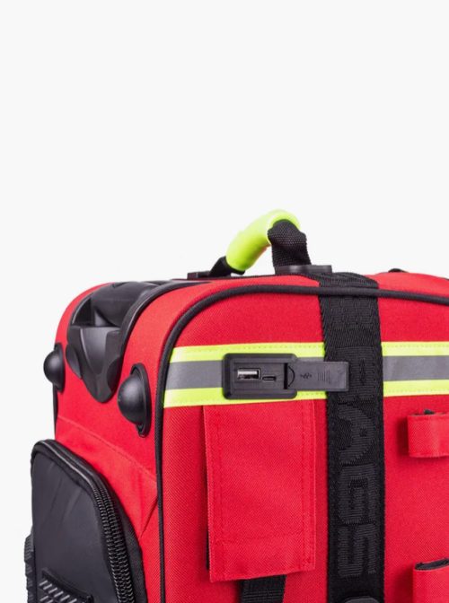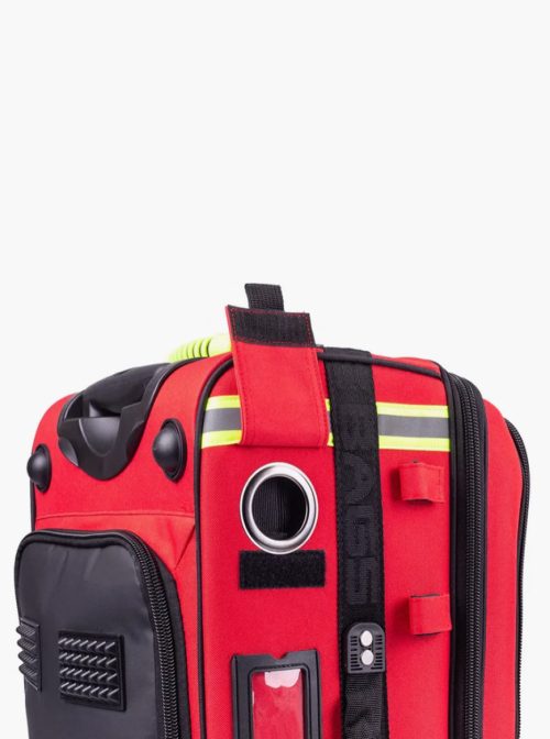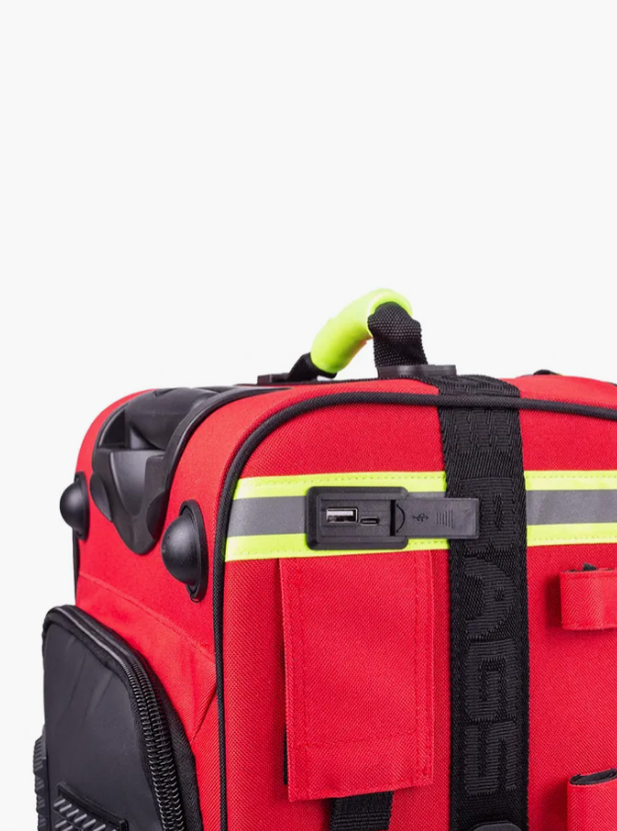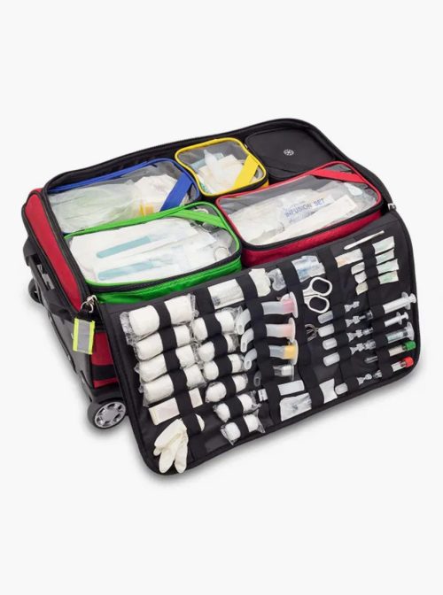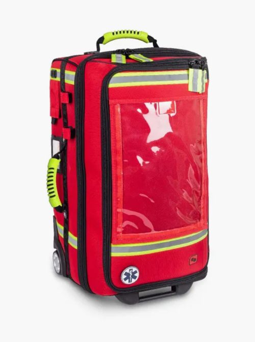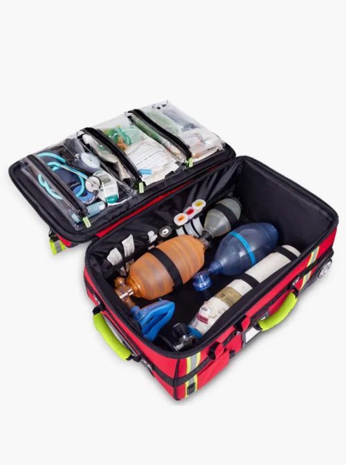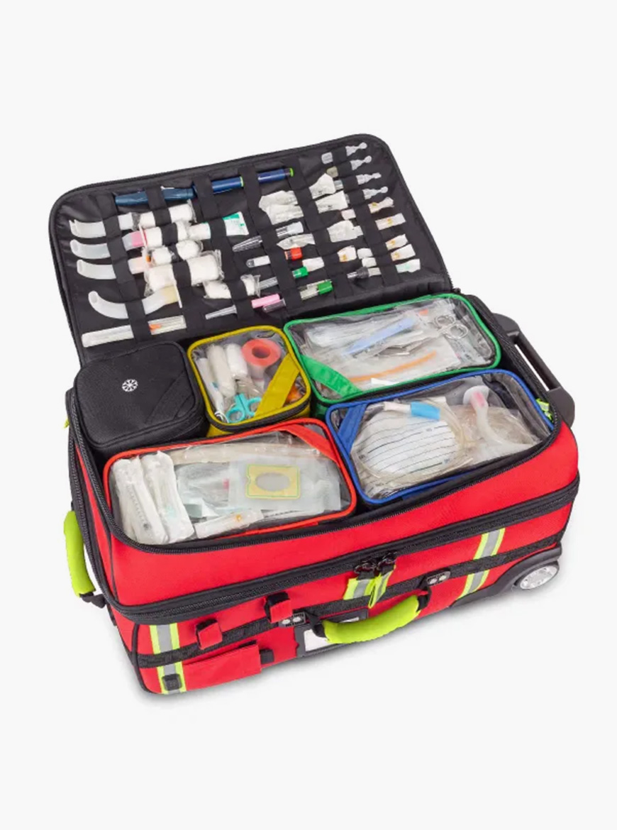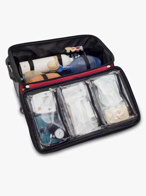 Mala de emergências de grande capacidade que permite transportar cómoda e ordenadamente todo o material médico necessário em serviços de urgência.