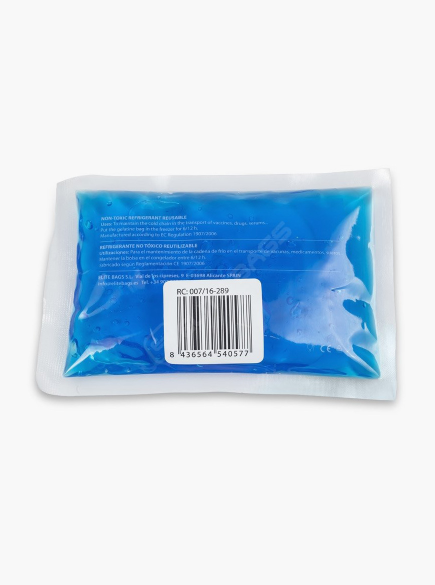 Manter a bolsa no congelador entre 6/12 h. Antes de aplicar a bolsa sobre a pele, envolvê-la com um pano limpo.