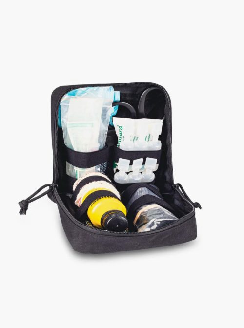 – Concebida para transportar artigos como tesouras, torniquetes, agentes hemostáticos, pensos de pressão, gaze comprimida, vedantes torácicos não ventilados, vias respiratórias nasofaríngeas, cobertores térmicos, compressas abdominais, ligaduras, fita adesiva médica, luvas, compressas com álcool e toalhetes.