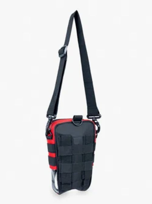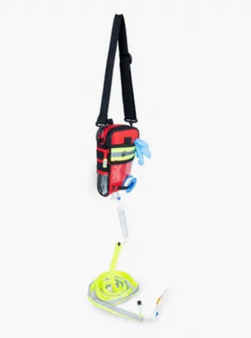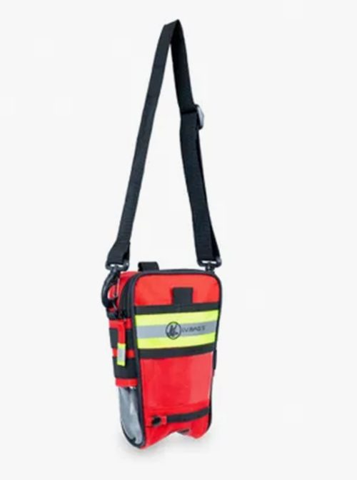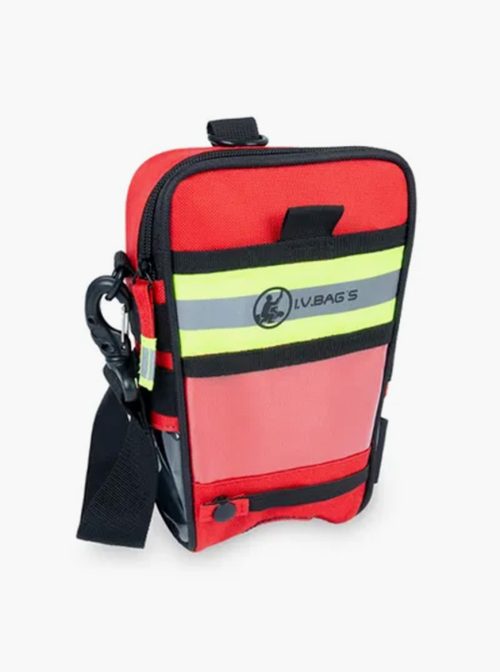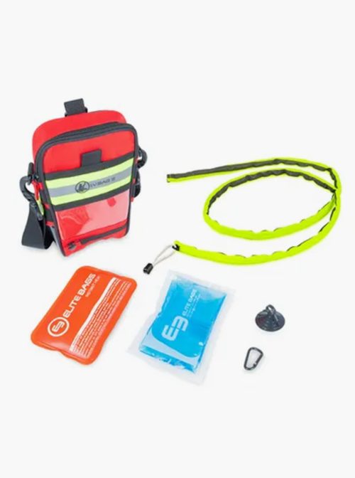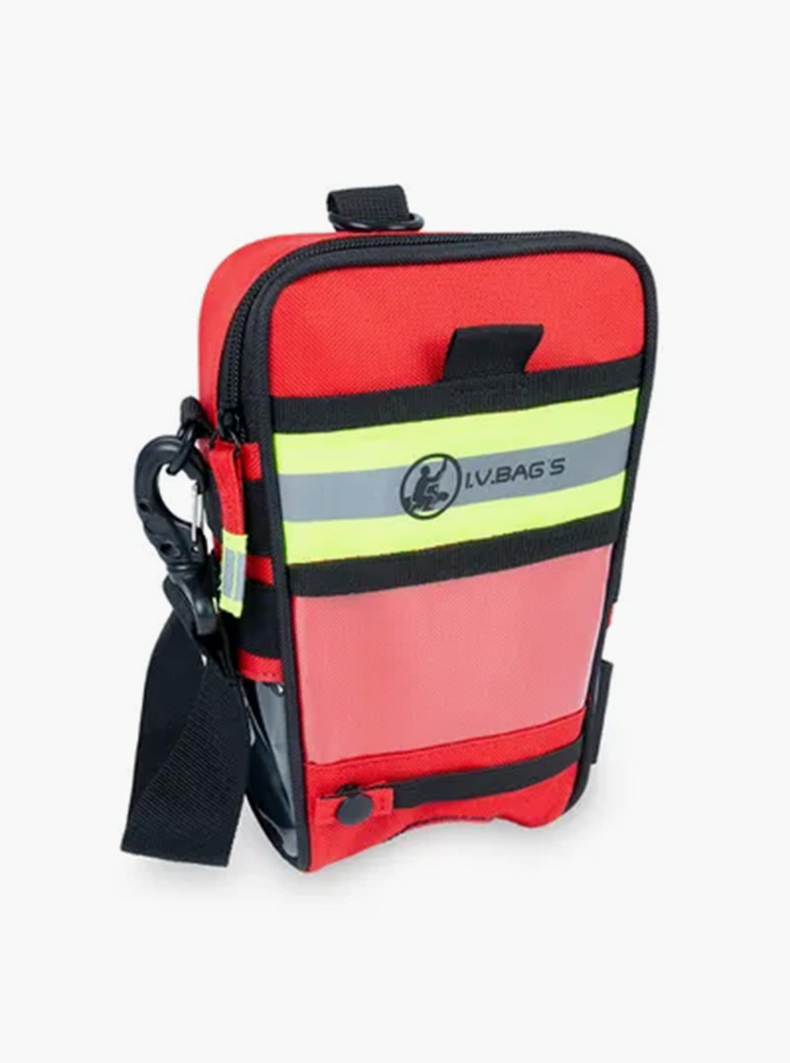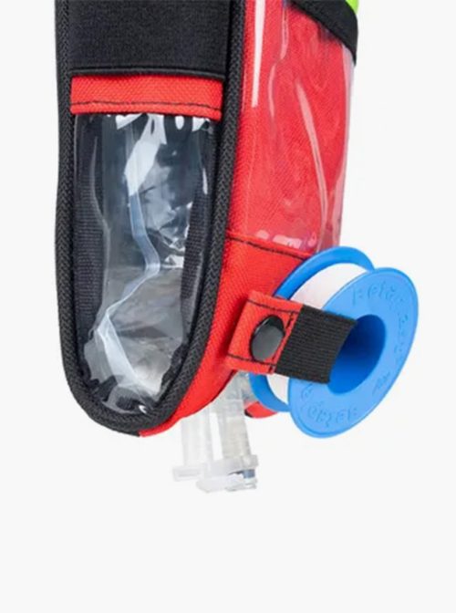 – Nos lados esquerdo e direito possui elásticos auxiliares (lanterna, luvas, etc…) e uma janela transparente que permite ver a quantidade de soro que resta no paciente a quem está a ser fornecido.