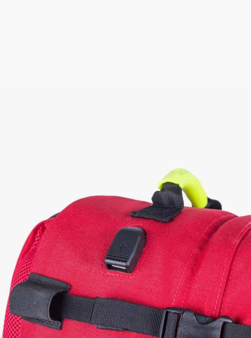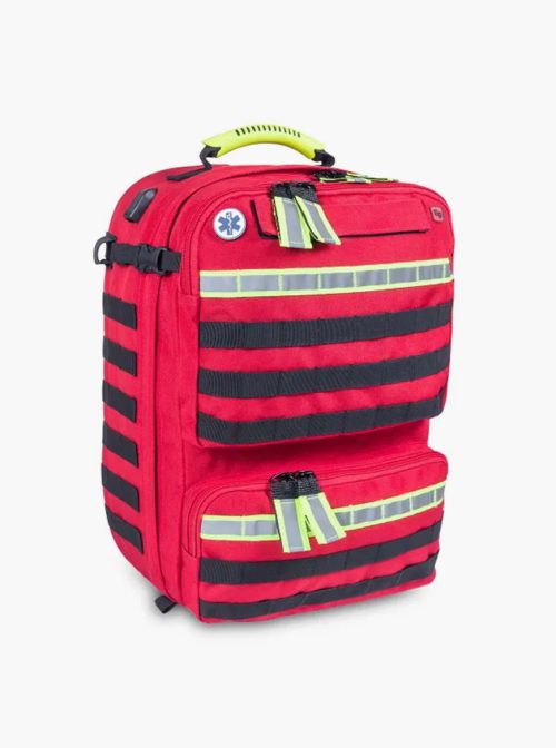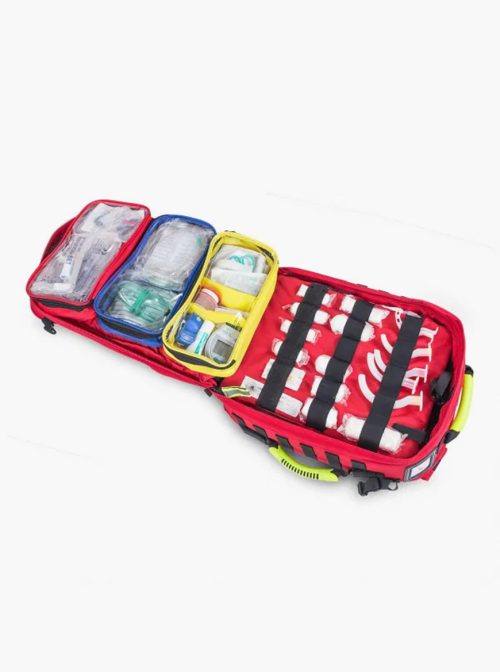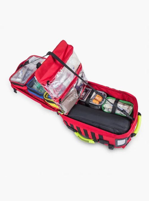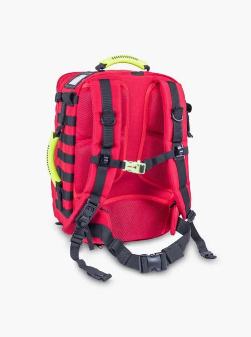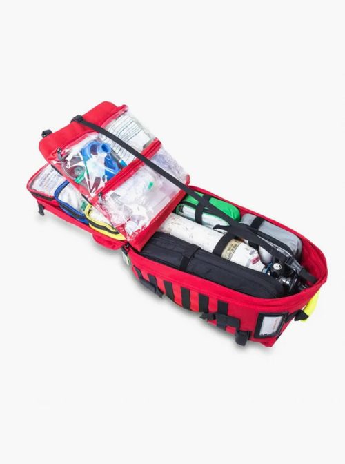 – Cintas interiores com fecho de velcro para acomodar a garrafa de oxigénio ou o respirador manual.