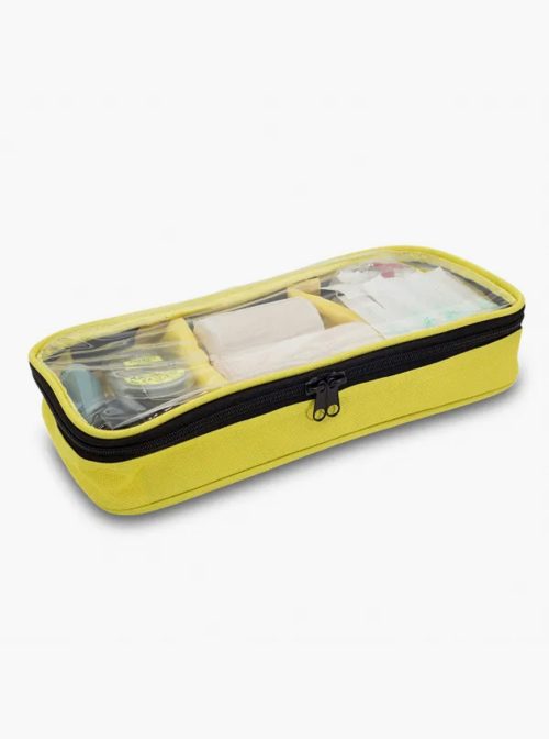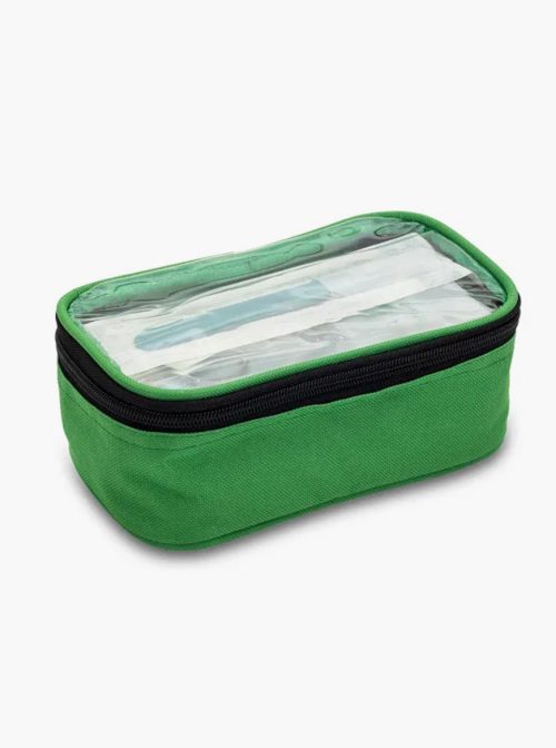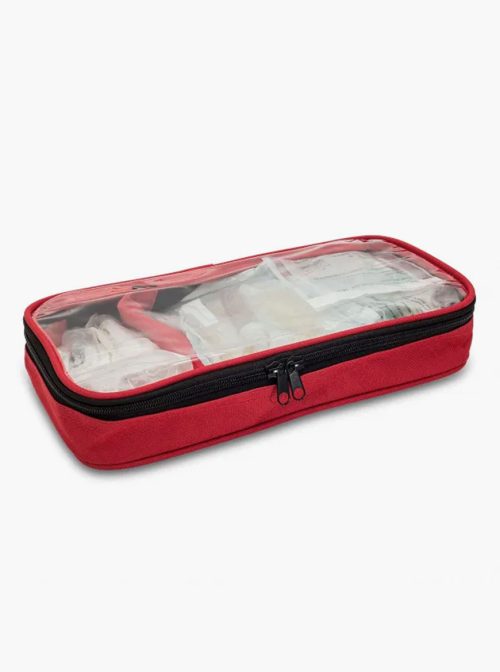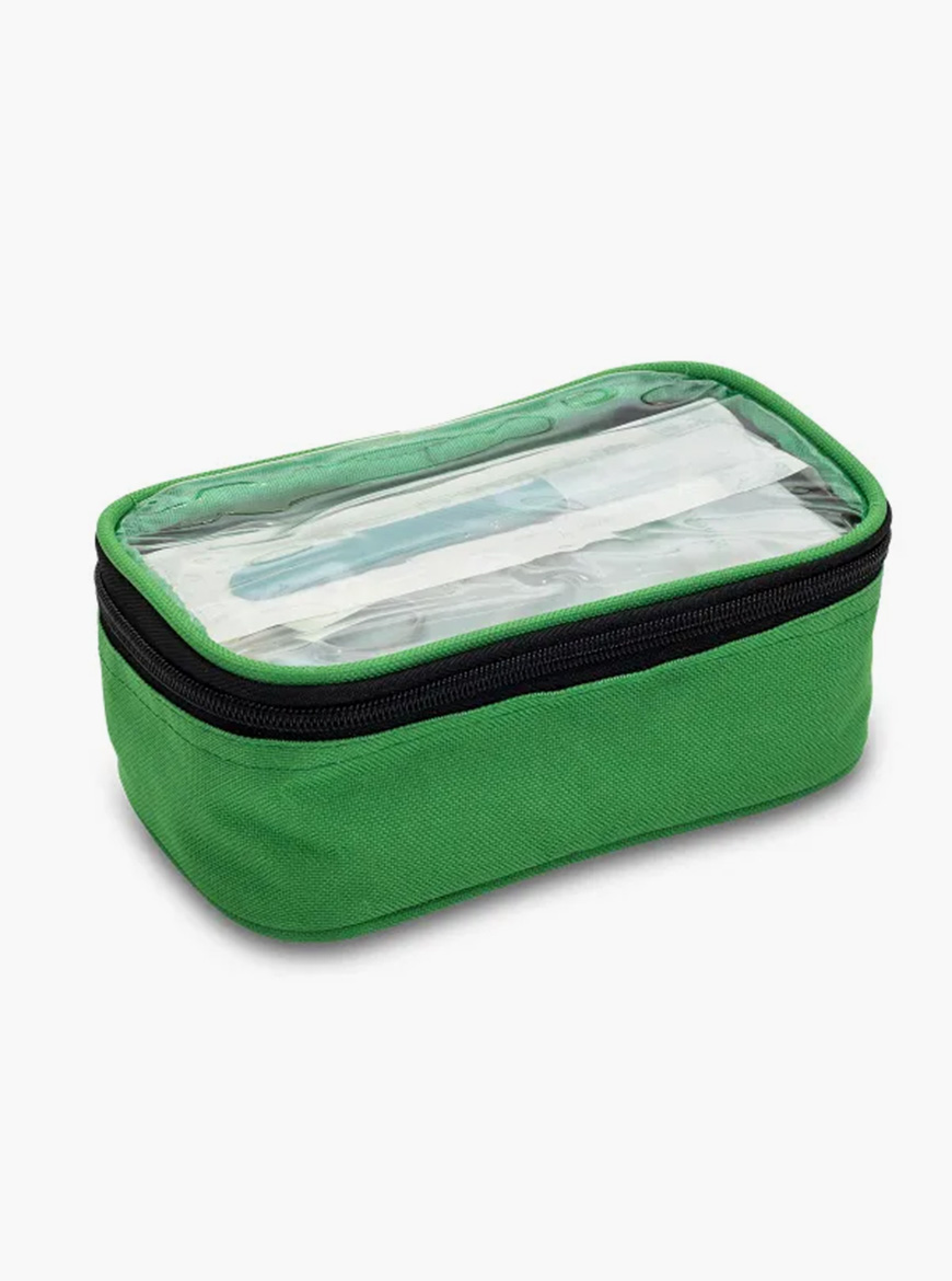 – Cinco compartimentos extraíveis com janela transparente, de acordo com o código de cores internacional para a classificação do material e instrumental.