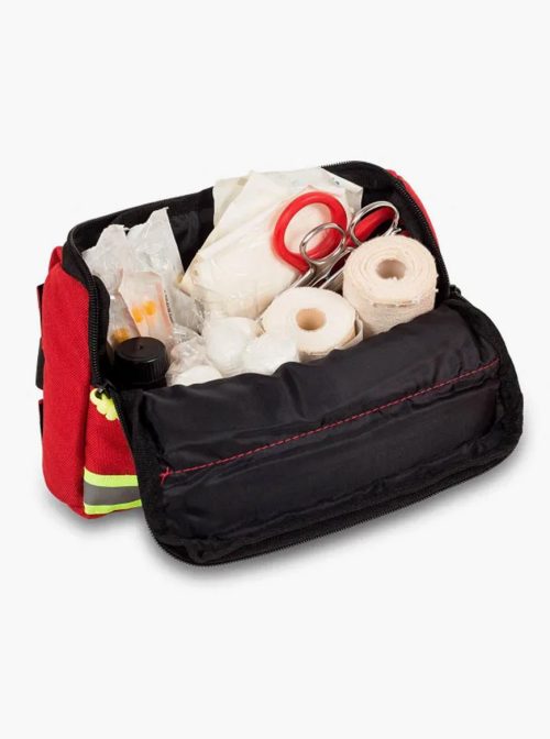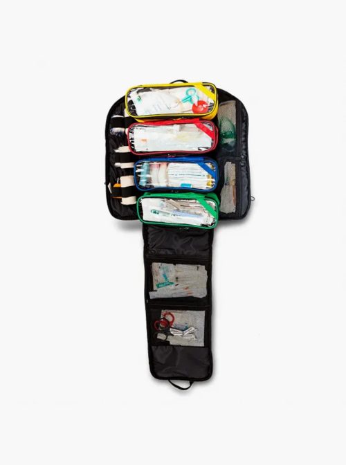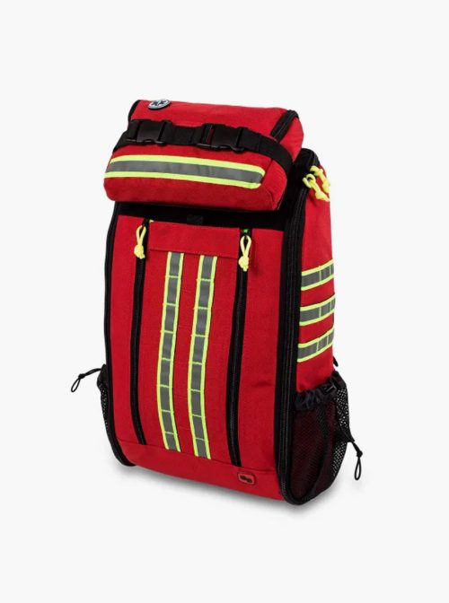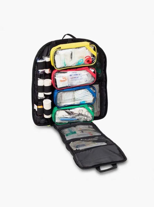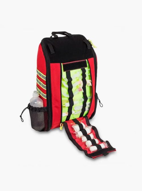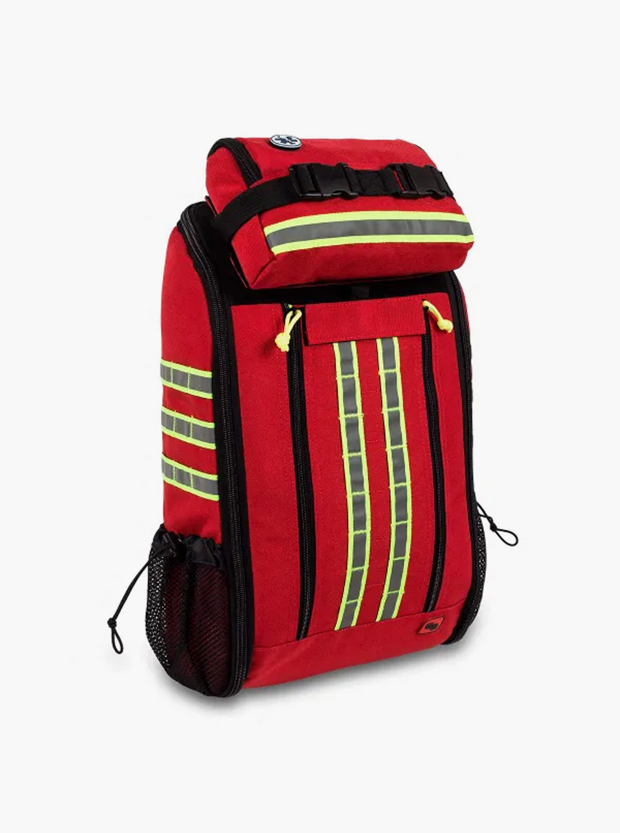 Mochila de primeira intervenção com acesso rápido a material médico, especialmente concebida para hospitais de campanha. Tem um compartimento amovível que pode ser utilizado como mochila de cintura para triagem e objetos pessoais.