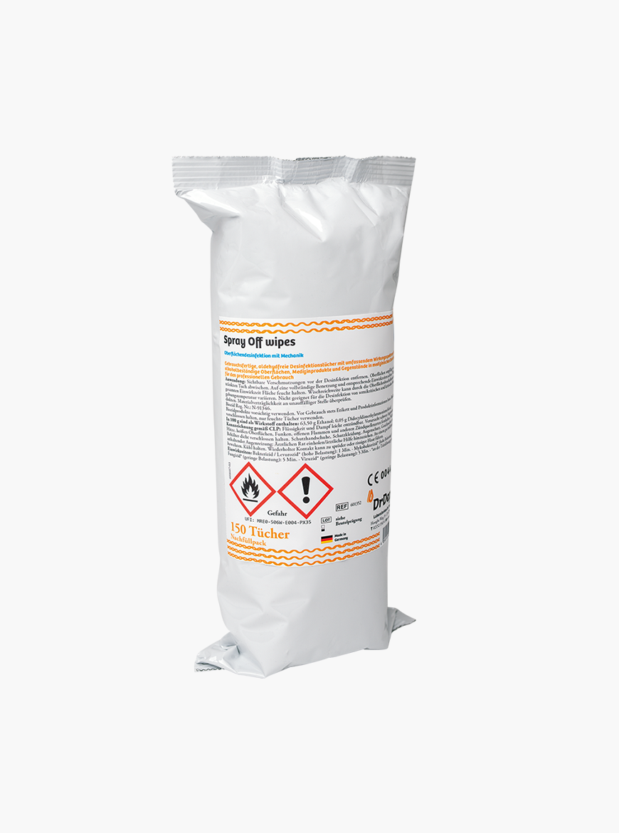 Toalhitas desinfetantes de superfícies à base de álcool, prontas a usar, em polipropileno, com uma ampla eficácia.
