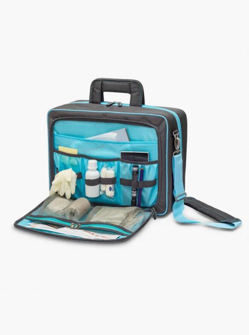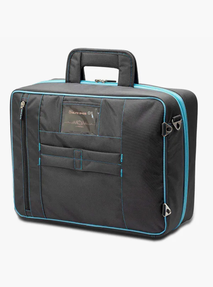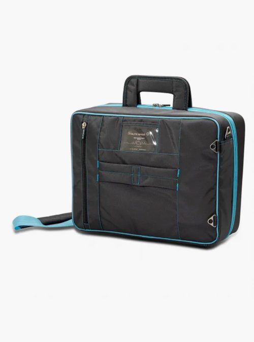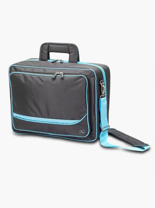 – Alça de transporte, local para identificador e asa com fecho magnético.
