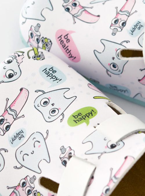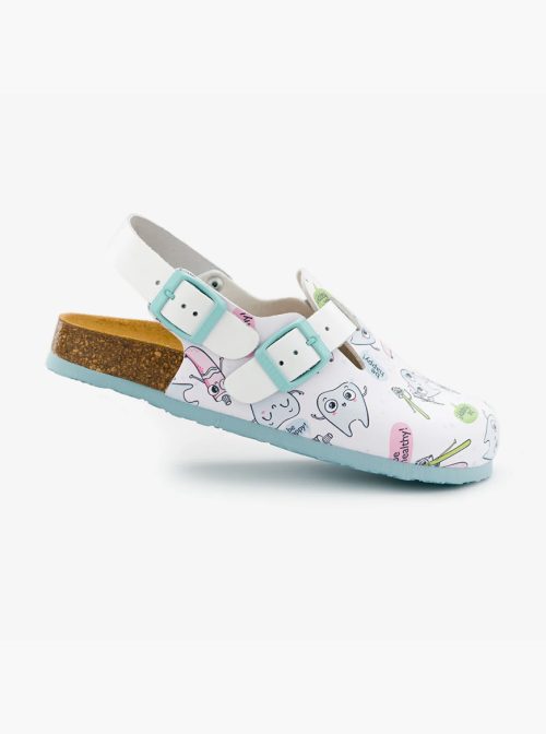 – Desapertar as tiras antes de tirar ou calçar as socas, para evitar puxões e/ou rasgões.