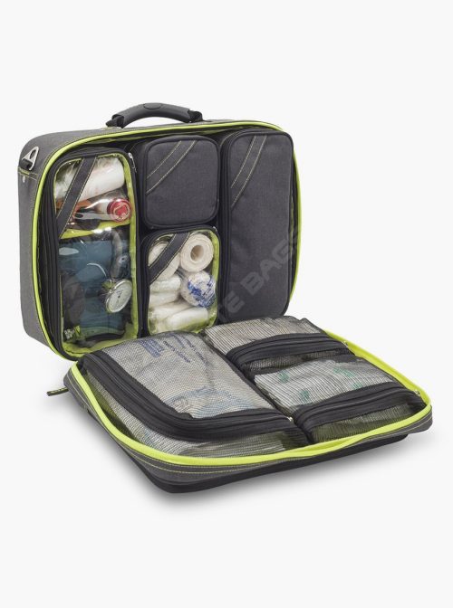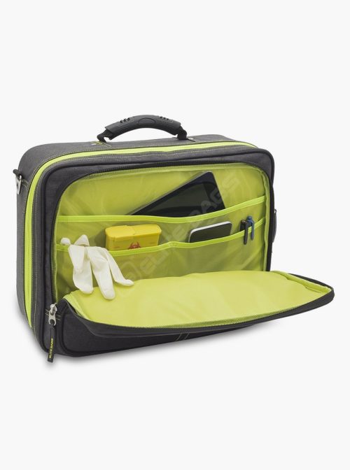 – Compartimento frontal com diversos bolsos para documentos, tablet, portátil e outros objetos pessoais.
