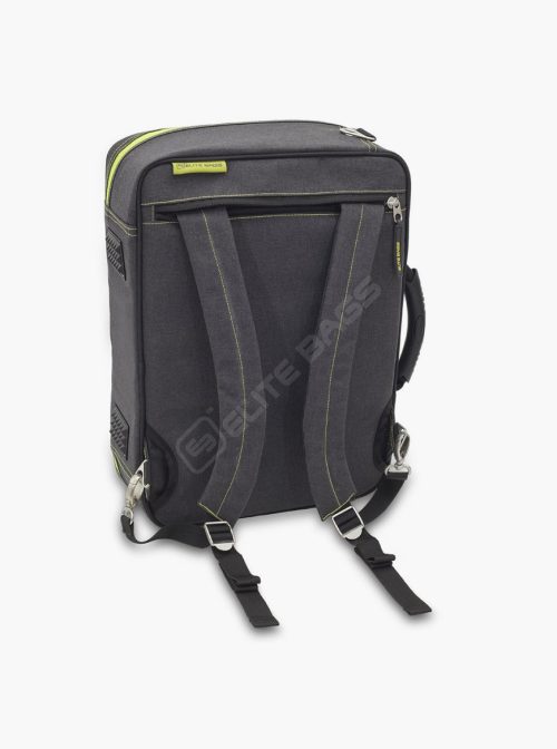 – Possibilidade de transportar como mochila, graças às alças ocultas na parte traseira. Também pode transportar-se com a pega ou a tiracolo.